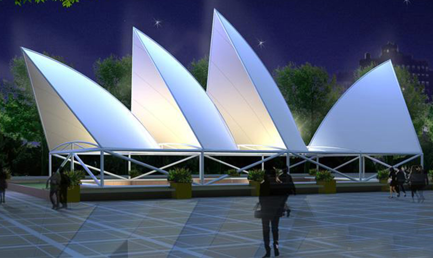 3、由于膜材料本身具有良好的透光率),建筑空間白天可以得到自然的漫射日光,可以節(jié)約大量用于照明的能源;