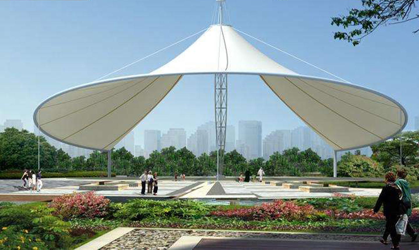 膜結(jié)構(gòu)景觀棚輕巧、別致的造型在停車場及候車廳的建設(shè)中起到重要作用,除了滿足防風(fēng)雨、防日曬等基本功能外,并有較好的標識招攬效果,展現(xiàn)了人們個性化的一面。如果你想有陰影覆蓋或擴大你的建筑特征,在短時間內(nèi)改變,除了木頭,石頭,金屬和玻璃材料的使用,另一種合適的材料是膜結(jié)構(gòu)景觀棚)。用PVC和PTFE膜,因此他們可以以低成本設(shè)計場館的屋頂結(jié)構(gòu)所需的形狀,這些材料可以被成功地用于幾乎所有的景觀或建筑環(huán)境,而且不受任何天氣條件的影響。膜結(jié)構(gòu)景觀棚的其他優(yōu)點是制造和安裝時間短,便宜的價格,高,拉伸和橫向的優(yōu)勢。