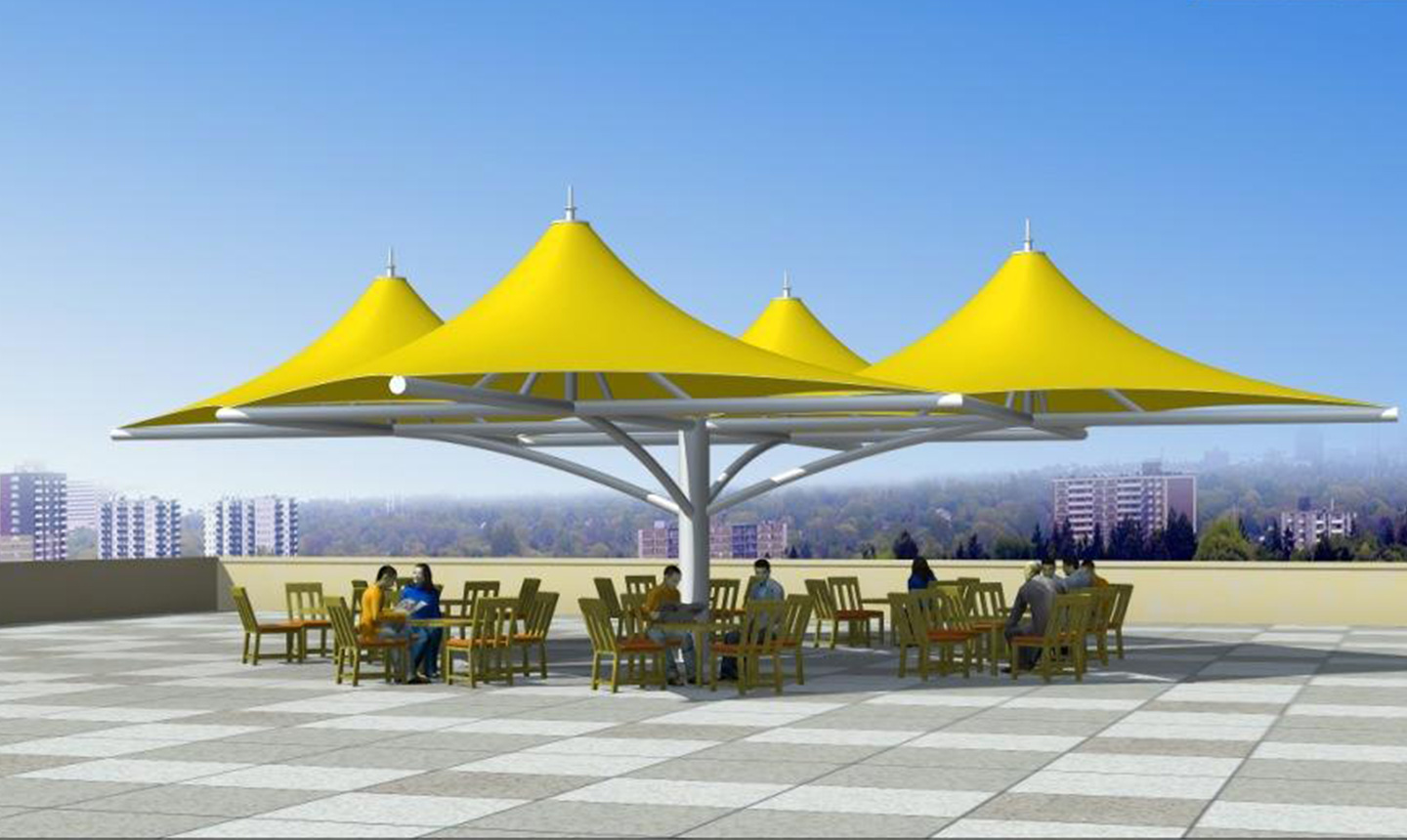 膜結構景觀棚輕巧、別致的造型在停車場及候車廳的建設中起到重要作用,除了滿足防風雨、防日曬等基本功能外,并有較好的標識招攬效果,展現(xiàn)了人們個性化的一面。如果你想有陰影覆蓋或擴大你的建筑特征,在短時間內(nèi)改變,除了木頭,石頭,金屬和玻璃材料的使用,另一種合適的材料是膜結構景觀棚)。用PVC和PTFE膜,因此他們可以以低成本設計場館的屋頂結構所需的形狀,這些材料可以被成功地用于幾乎所有的景觀或建筑環(huán)境,而且不受任何天氣條件的影響。膜結構景觀棚的其他優(yōu)點是制造和安裝時間短,便宜的價格,高,拉伸和橫向的優(yōu)勢。