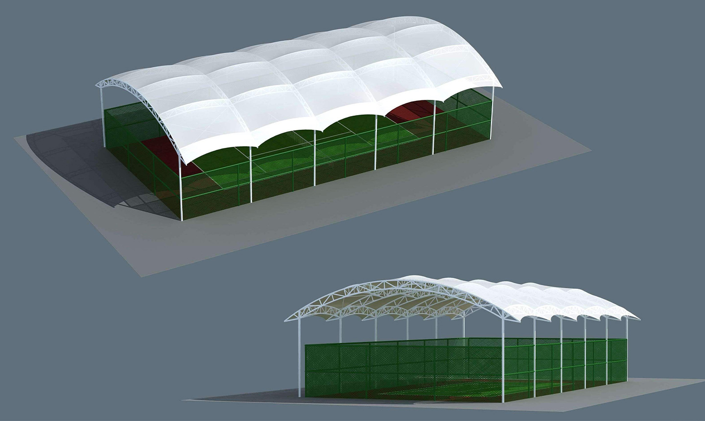 一、對于場地要求低,基本上所有球場地都可以做膜結(jié)構(gòu)頂棚,相比混凝土結(jié)構(gòu)的風(fēng)雨球館,施工周期短,造價(jià)低。