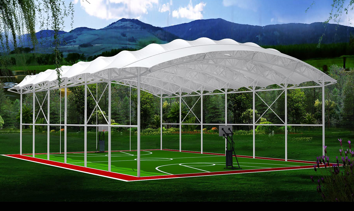 一、對于場地要求低,基本上所有球場地都可以做膜結(jié)構(gòu)頂棚,相比混凝土結(jié)構(gòu)的風(fēng)雨球館,施工周期短,造價低。