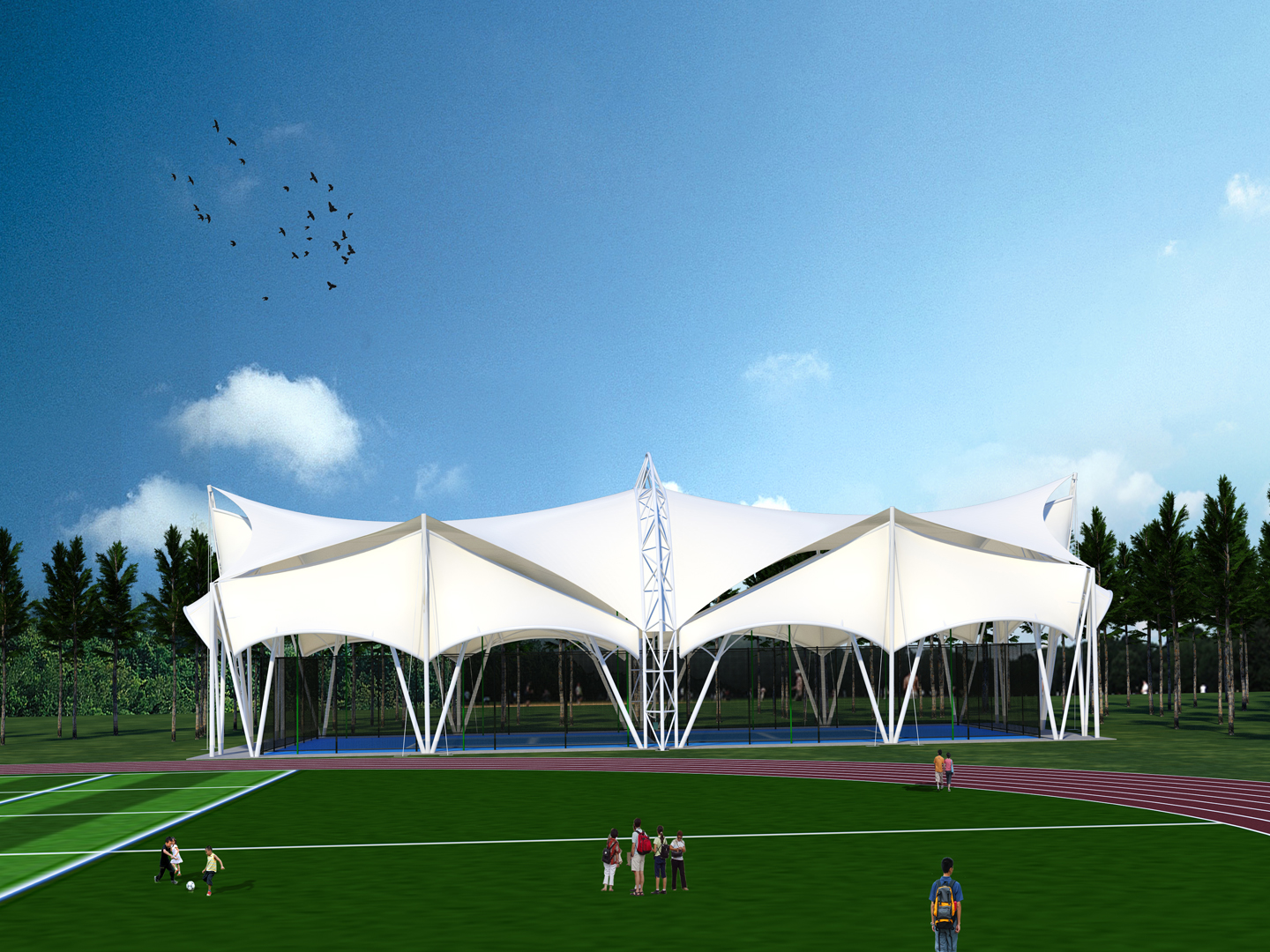 PTFE(聚四氟乙烯),俗稱“塑料王”,由于其結(jié)構(gòu)高度對稱,高分子碳鏈周圍由全部碳氟鍵(自然界最穩(wěn)定的化學(xué)鍵)緊密包圍,是已知高分子材料中化學(xué)性質(zhì)最穩(wěn)定、綜合性能較強(qiáng)的高分子材料,產(chǎn)品特性: 耐高溫 、高阻燃 、強(qiáng)不粘 、高自潔 、抗腐蝕 、高介電 、高強(qiáng)度;PTFE膜材日漸成為大中型膜結(jié)構(gòu)建筑的首選材料!