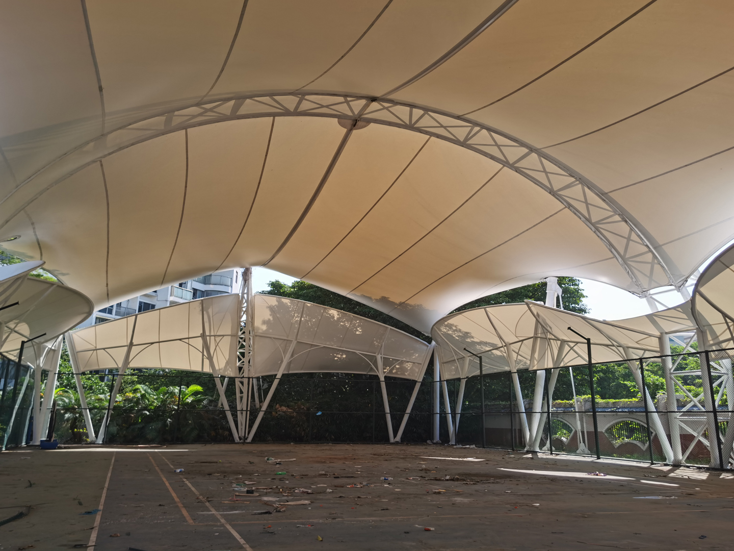 要注意膜材在不同受力情況的延展性,嚴(yán)禁過度張拉膜材。