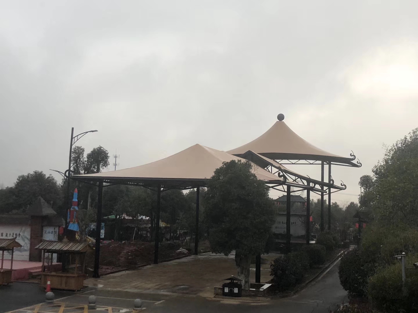 要注意膜材在不同受力情況的延展性,嚴(yán)禁過度張拉膜材。