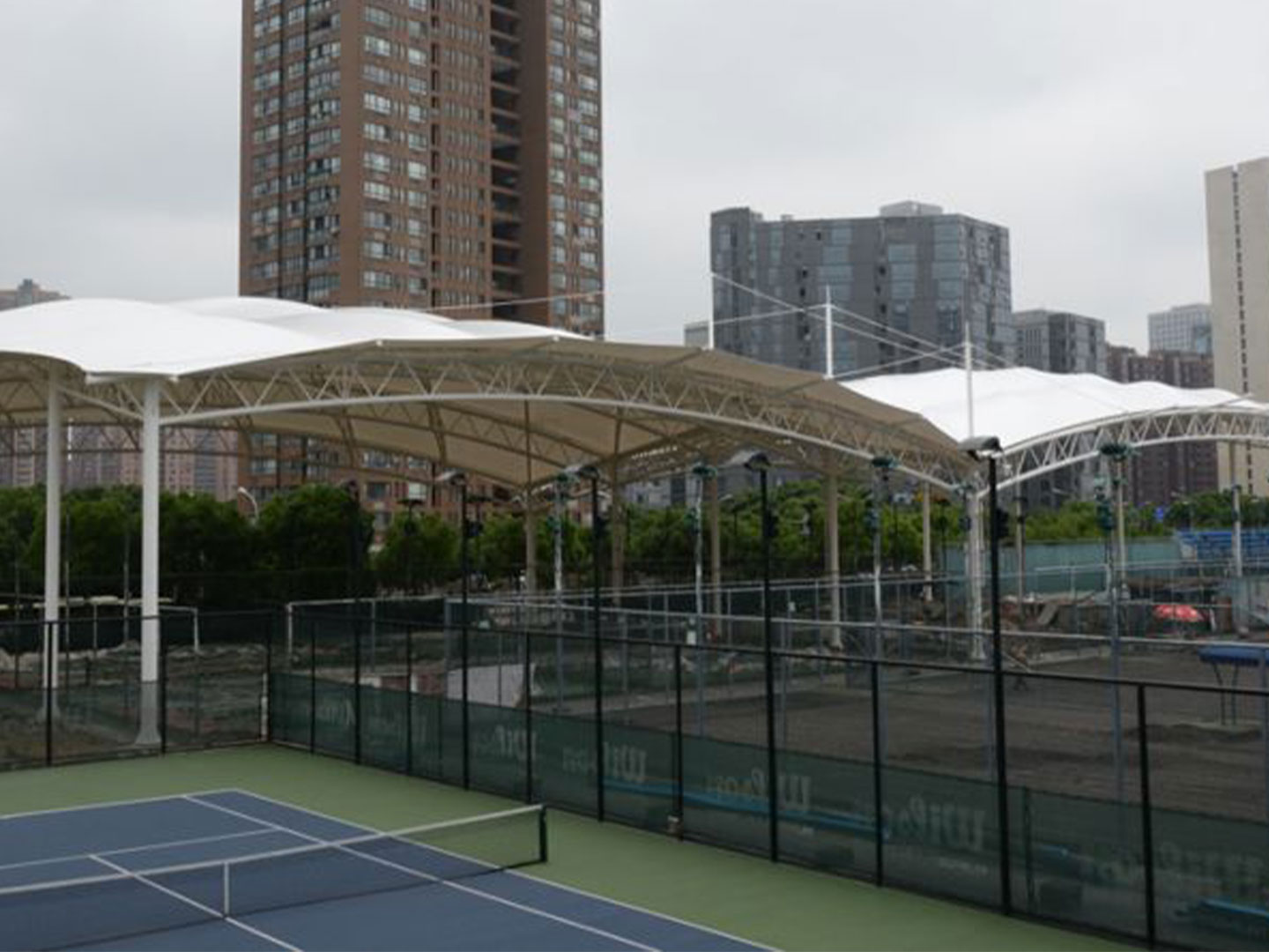 PTFE膜材的最大特點是強度高、耐久性好、防火難燃、自潔性好,不受紫外線影響,使用壽命在25年以上。具有高透光率,透光率為13%, 對熱能反射率73%,熱吸收量很少。正是因為這種劃時代的膜材料的發(fā)明,使膜結構建筑成為現(xiàn)代化的永久性建筑。