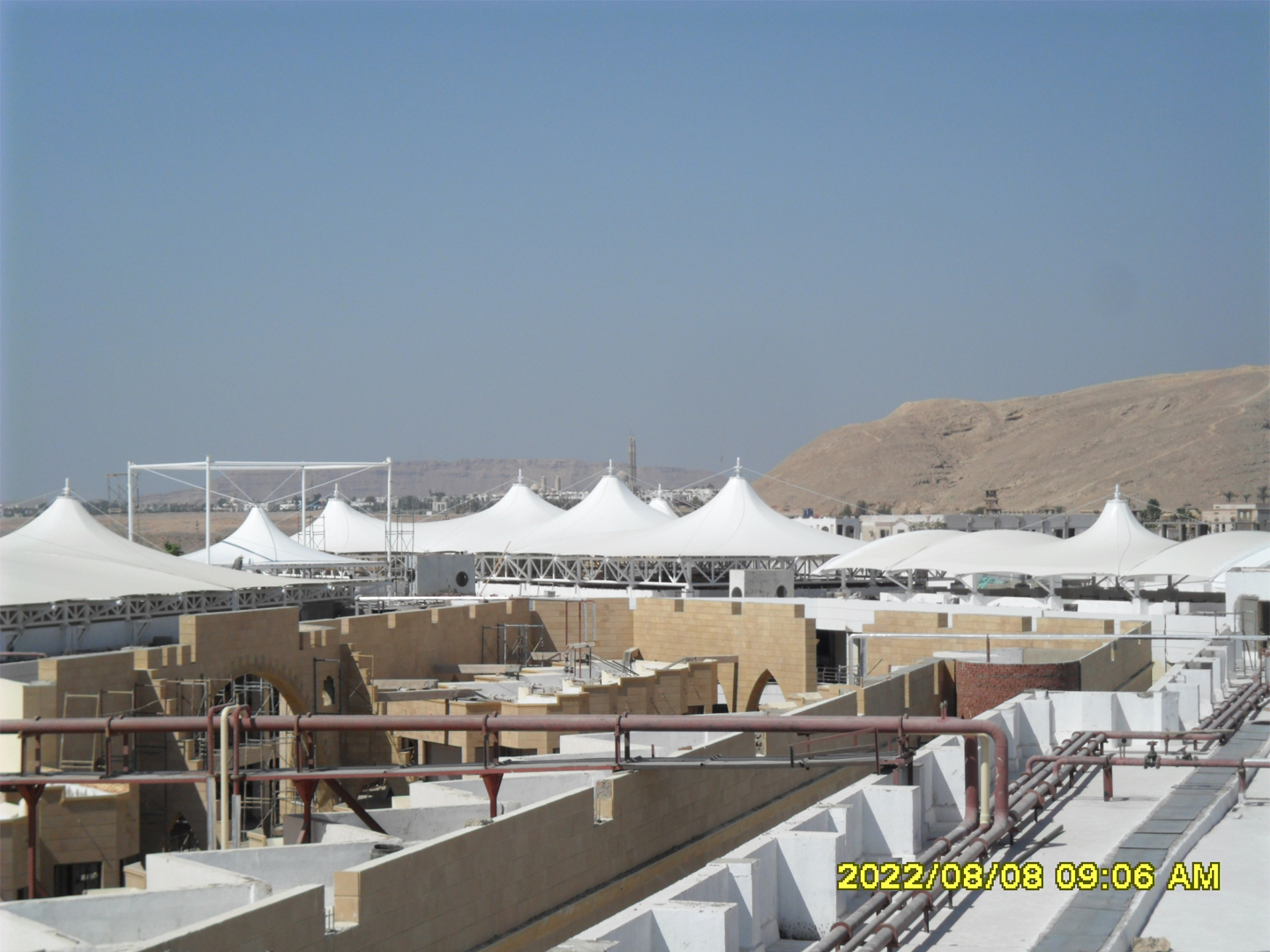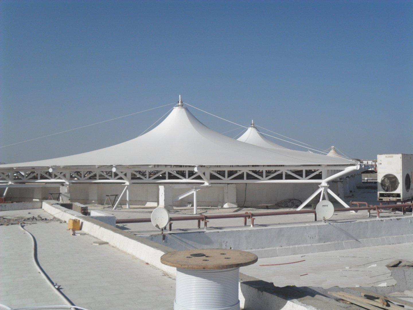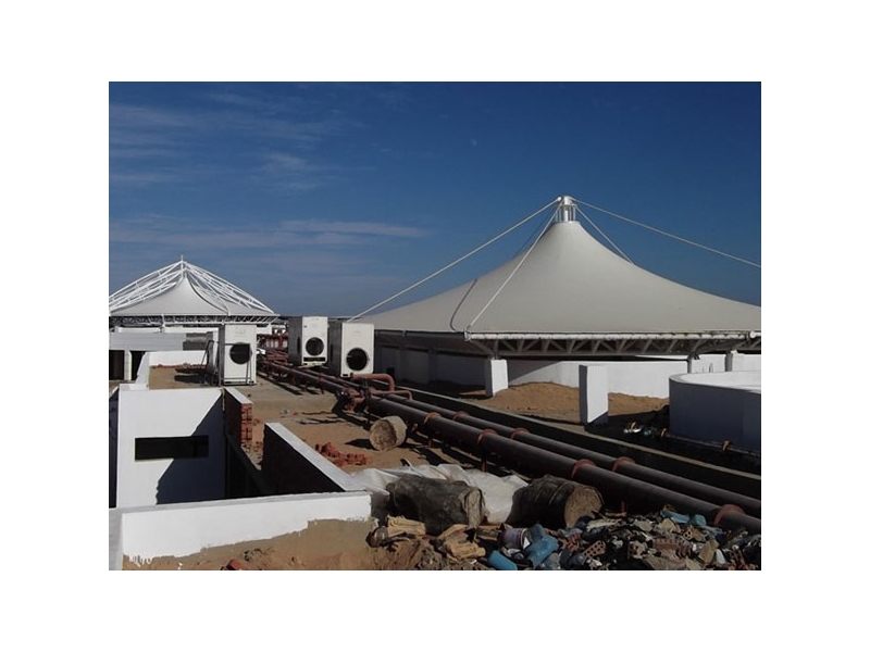 PVDF膜結(jié)構(gòu)材料是由膜結(jié)構(gòu)聚脂纖維加PVDF涂層而成, 更高級的PVDF膜結(jié)構(gòu)材料涂有二氧化鈦,材料自潔性極高。 PVDF膜結(jié)構(gòu)材料具有光觸媒的有機物分機能(氧化分解),對去除臟污有顯著的效果。
