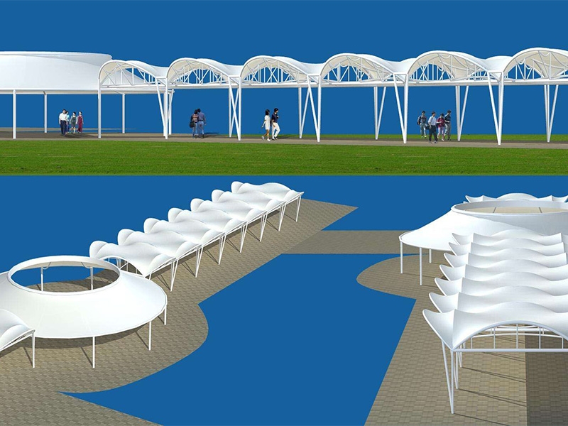 對于膜結(jié)構(gòu)建筑來說,首先要發(fā)揮抵御各種天氣現(xiàn)象的作用,比如說自然現(xiàn)象的日曬雨淋等會對建筑結(jié)構(gòu)有的內(nèi)部空間造成的影響,還要保持建筑物內(nèi)部人們生活環(huán)境的舒適度。在使用這樣的材料建筑的時候,我們要考慮好選擇什么樣的材料來應(yīng)對當(dāng)?shù)剌^普遍的天氣的狀況。對于室內(nèi)的透光性以及很好的通風(fēng)的效果,也是張拉膜景觀設(shè)計的較為突出要在意的一點。
